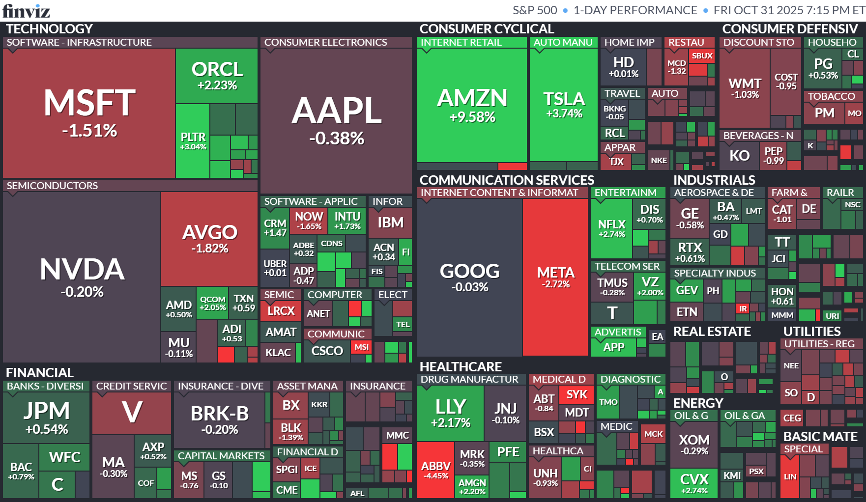 アマゾンは9.6%上昇した。前日の取引終了後に発表した2025年7~9月期決算は増収増益となり、クラウド事業が堅調だった。